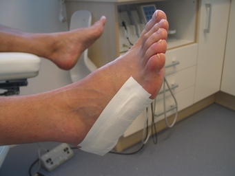 Tijdelijke vilttherapie – taping: Pijnlijke drukplekken of wondjes worden met vilt direct ontlast en beschermd. Tevens kan er bij een overbelasting direct verlichting gegeven worden.